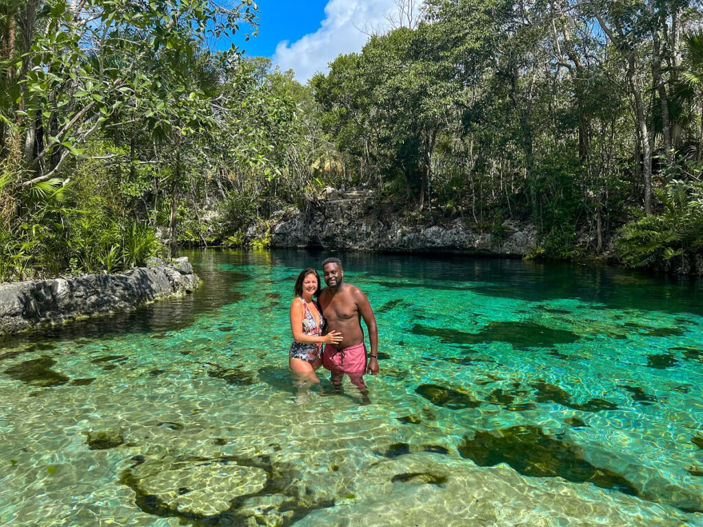 Dans le même domaine, vous découvrirez un cenote naturel spectaculaire, entouré de parois rocheuses et de végétation luxuriante. Ses eaux cristallines aux tons bleu turquoise offrent un décor féérique.
