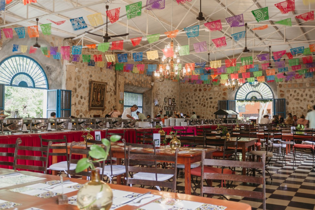 Un buffet généreux et typique vous y attend : spécialités régionales comme la cochinita pibil, la soupe de lima, les papadzules, ainsi que des options végétariennes. Il ne s’agit pas d’un buffet classique : c’est une immersion dans les saveurs locales exclusives à la région.