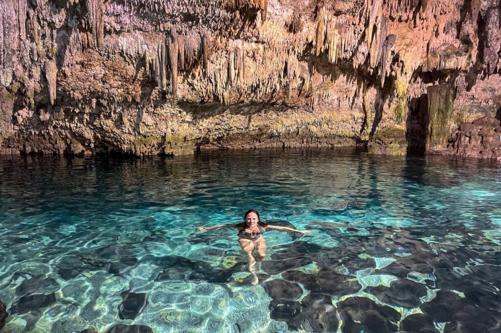Nous visitons un cenote d’accès facile, aux eaux transparentes et rafraîchissantes, parfait pour les enfants comme pour les adultes.